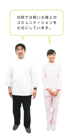 ペットの病気を診るだけでなく、飼い主様を含めたペットのご家族を支える、そんな病院でありたい。揺りかごから墓場まで、ともに笑いともに泣き、寄り添いあって生きていく。そんな関係が築けたらと願っています。